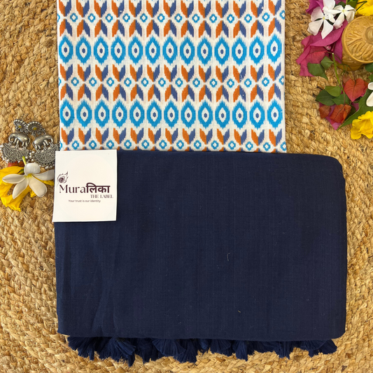 Orange & Blue Tie Dye Mulmul Cotton Saree
