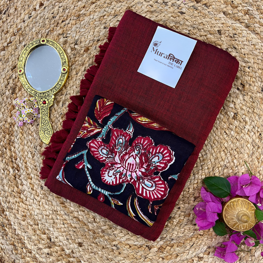 Muralika Maroon & Mehendi Handloom Cotton Saree