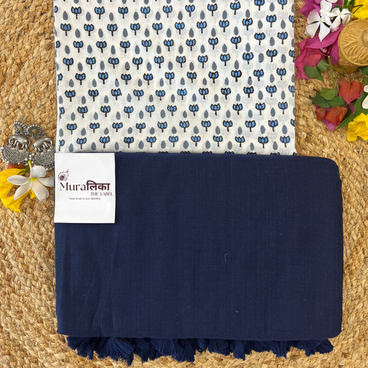 Phoolwari Off white Embroireded Mulmul Cotton Saree