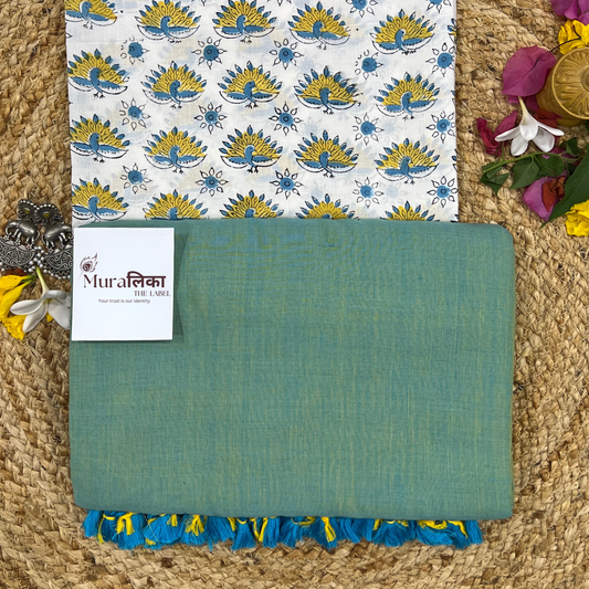 Muralika Maroon & Mehendi Handloom Cotton Saree