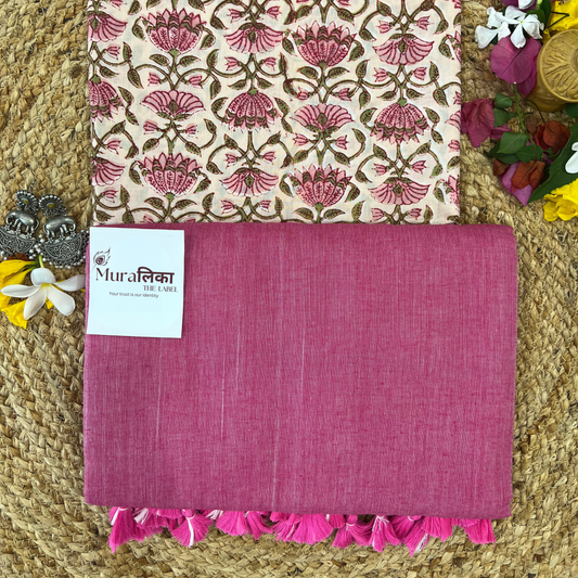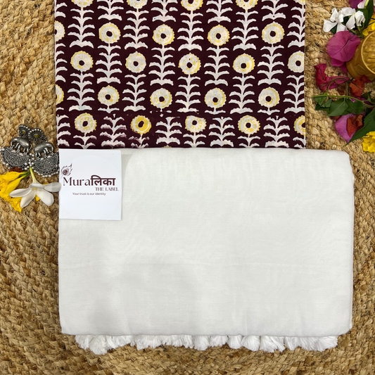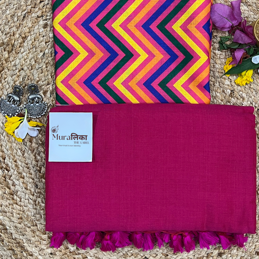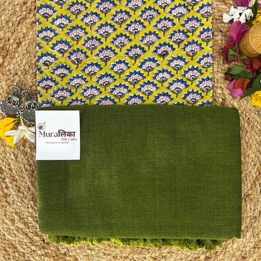Muralika Maroon & Mehendi Handloom Cotton Saree
