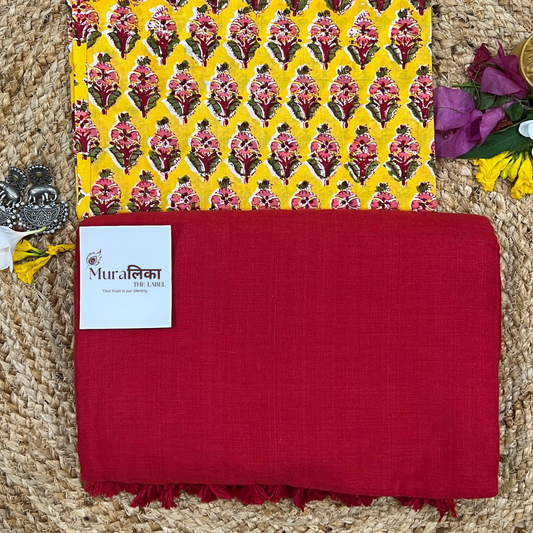 Gulmohar Yellow Handpainted Mulmul cotton Saree
