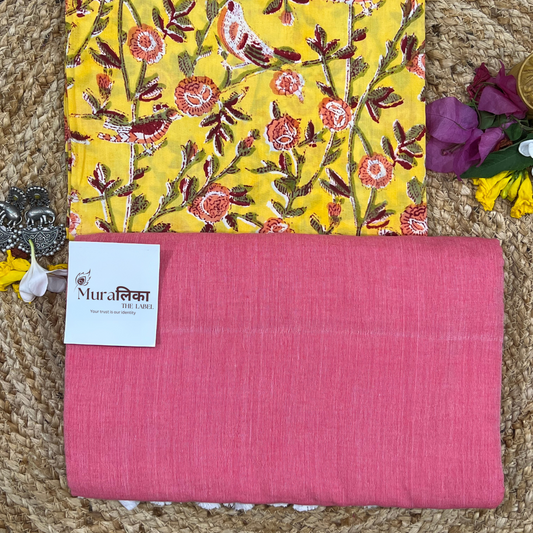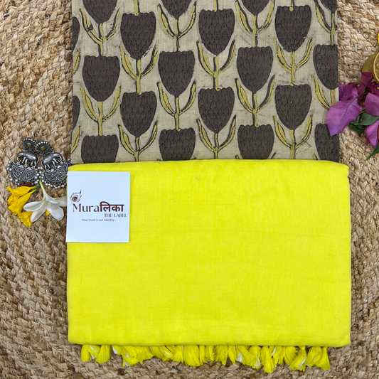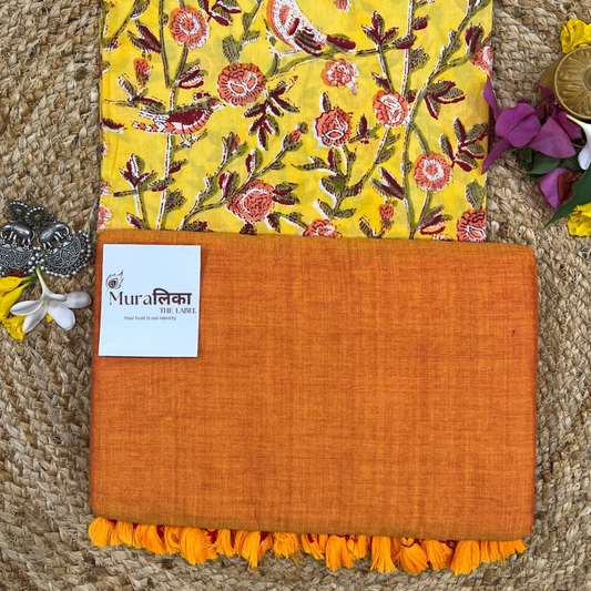 Gulmohar Yellow Handpainted Mulmul cotton Saree