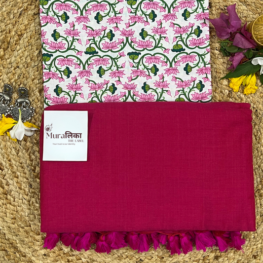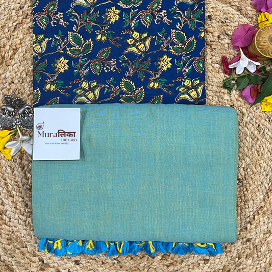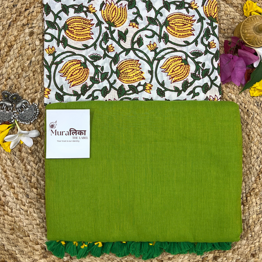 Muralika Maroon & Mehendi Handloom Cotton Saree