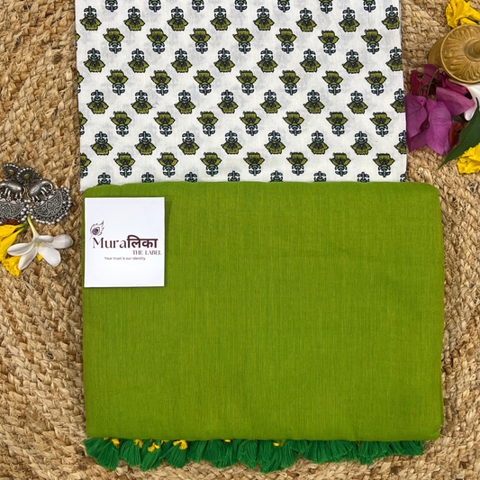 Muralika Maroon & Mehendi Handloom Cotton Saree