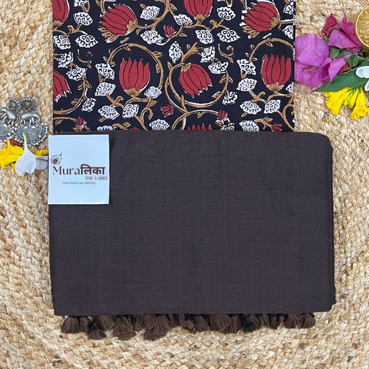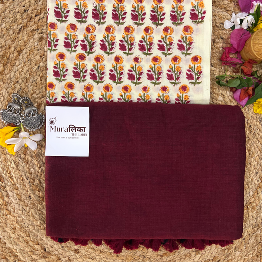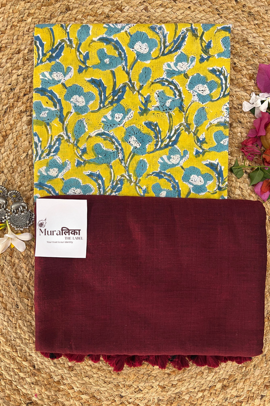 Muralika Maroon & Mehendi Handloom Cotton Saree