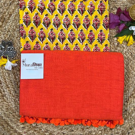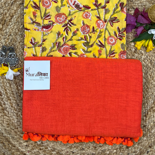 Gulmohar Yellow Handpainted Mulmul cotton Saree