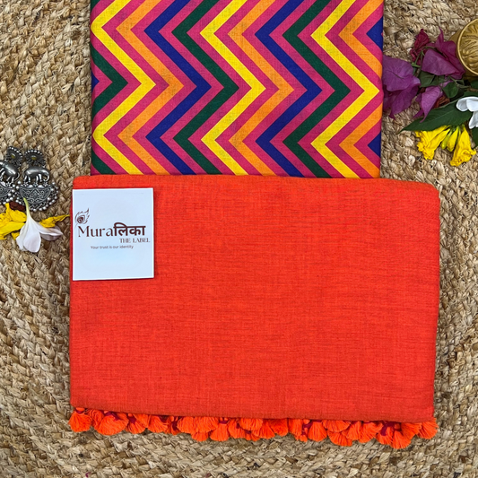 Orange & Blue Tie Dye Mulmul Cotton Saree