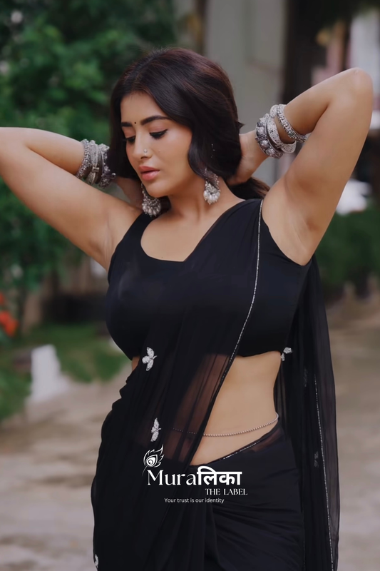Muralika Black handwork Chiffon Saree