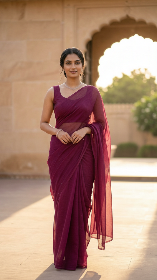 Muralika magenta mukaish Chiffon Saree