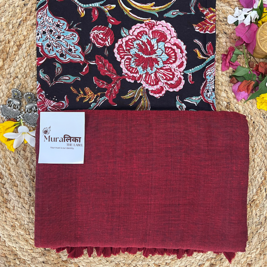 Muralika Maroon & Mehendi Handloom Cotton Saree