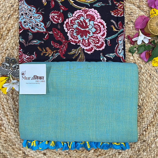 Muralika Black & Lime Handloom Cotton Saree