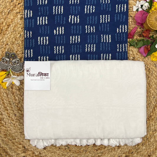 Orange & Blue Tie Dye Mulmul Cotton Saree