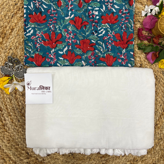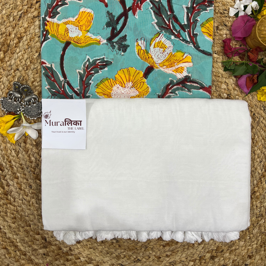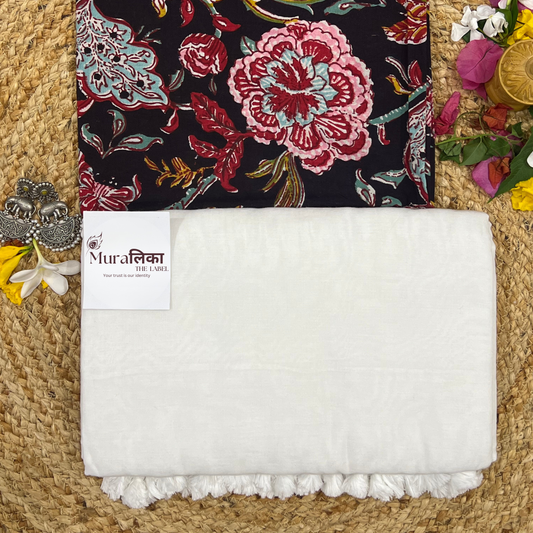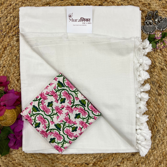 Phoolwari Off white Embroireded Mulmul Cotton Saree