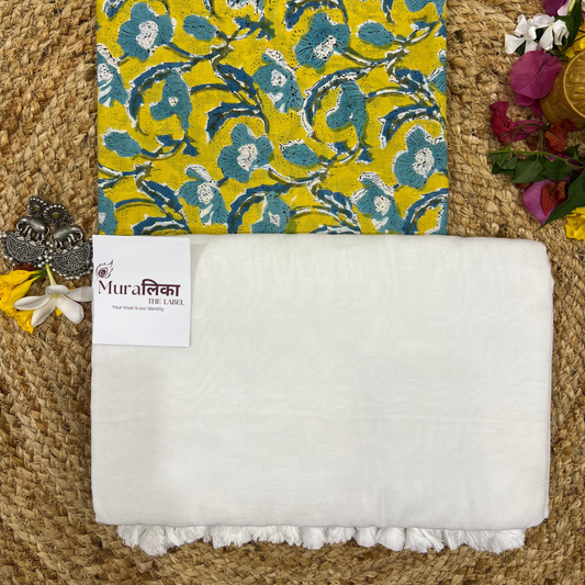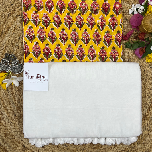 Gulmohar Yellow Handpainted Mulmul cotton Saree