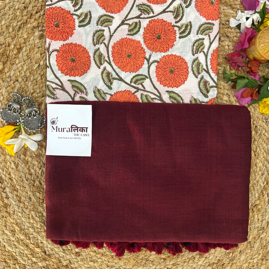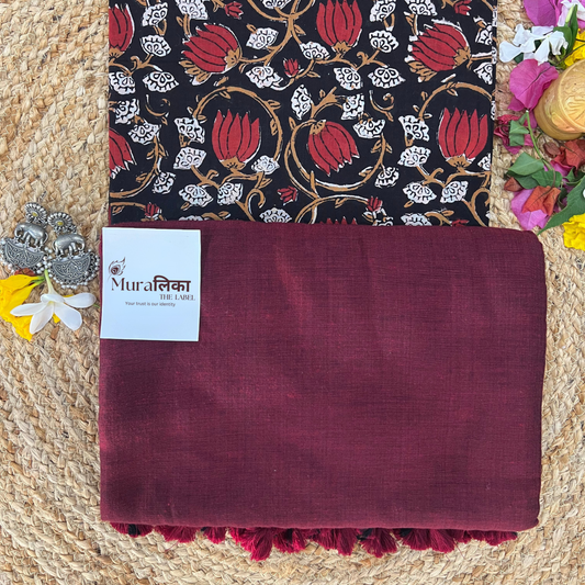 Muralika Maroon & Mehendi Handloom Cotton Saree