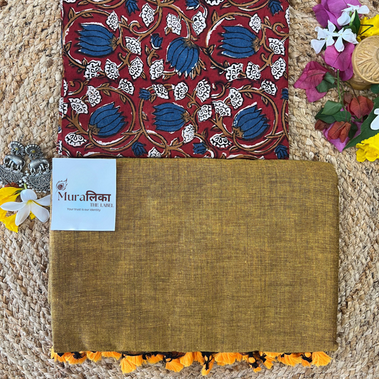 Muralika Maroon & Mehendi Handloom Cotton Saree