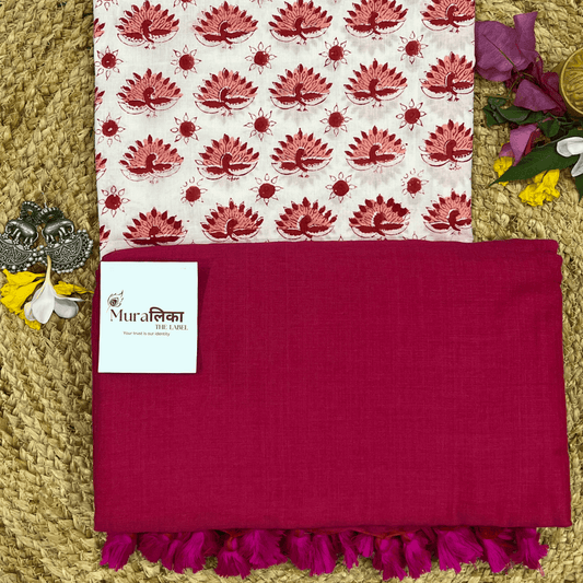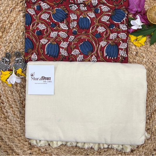 Muralika Maroon & Mehendi Handloom Cotton Saree