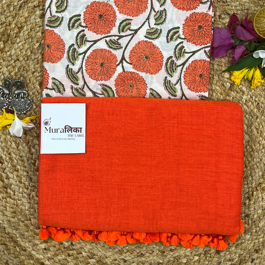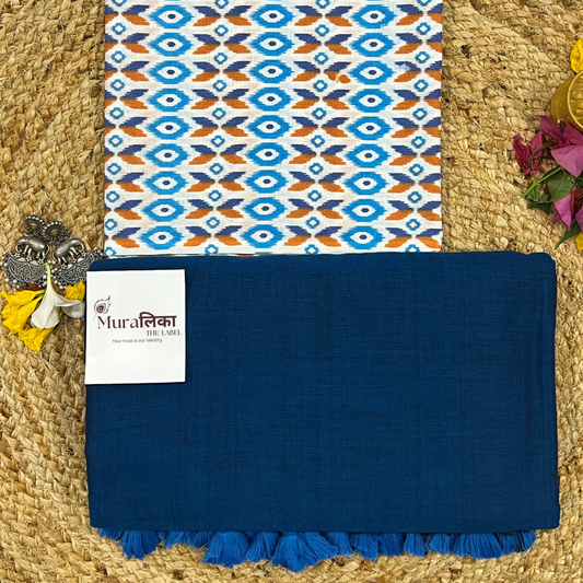 Orange & Blue Tie Dye Mulmul Cotton Saree