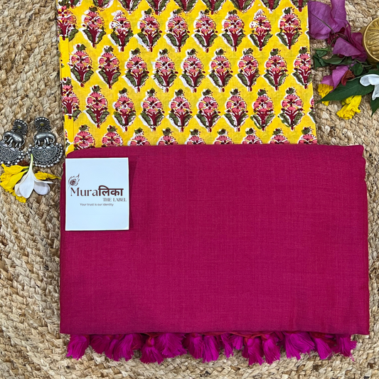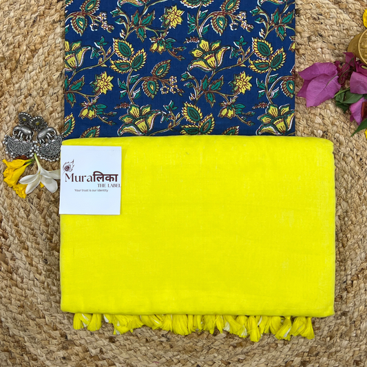 Gulmohar Yellow Handpainted Mulmul cotton Saree