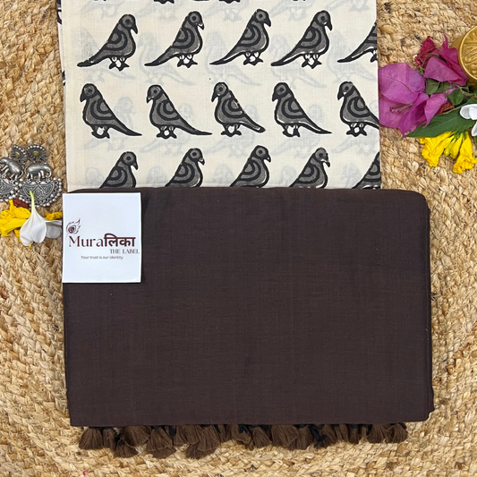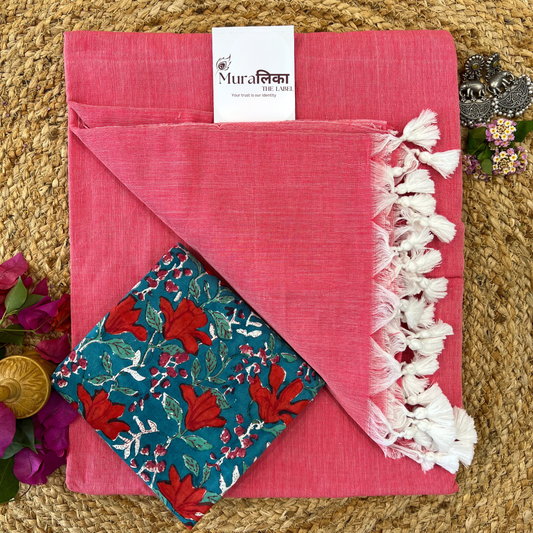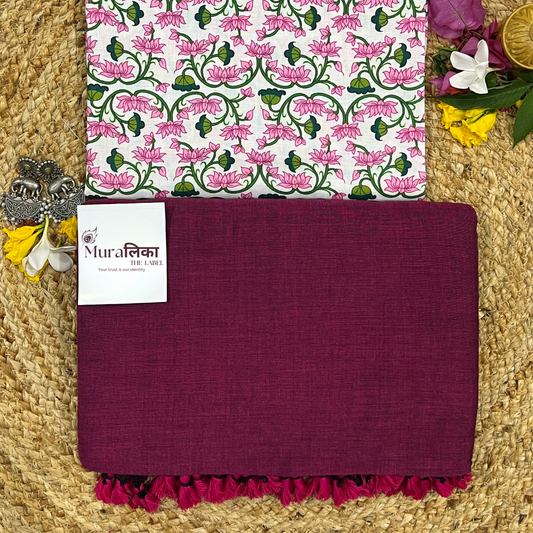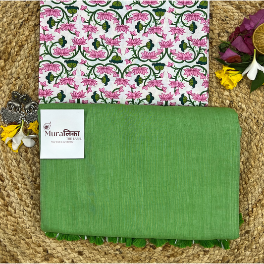 Muralika Maroon & Mehendi Handloom Cotton Saree