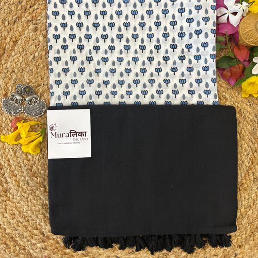 Phoolwari Off white Embroireded Mulmul Cotton Saree