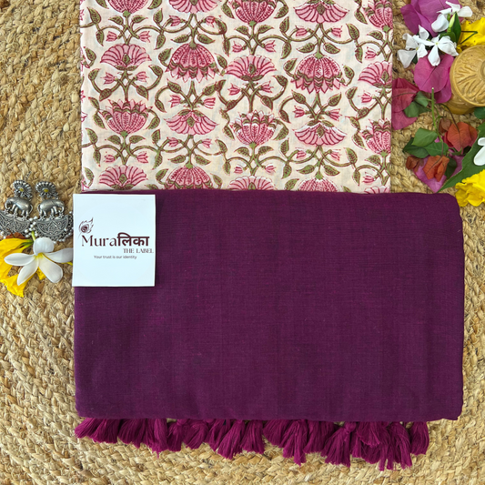 Muralika Purple & Rama Handloom Cotton Saree