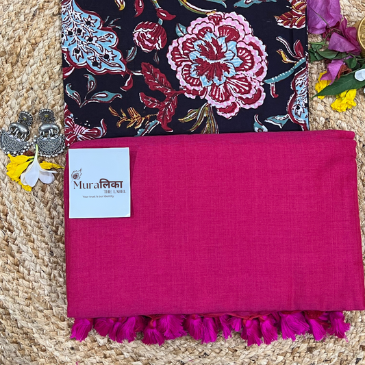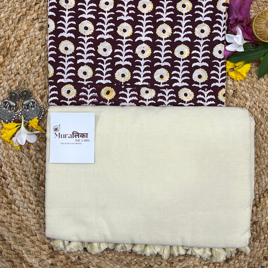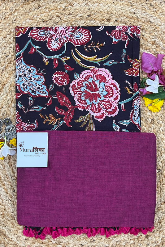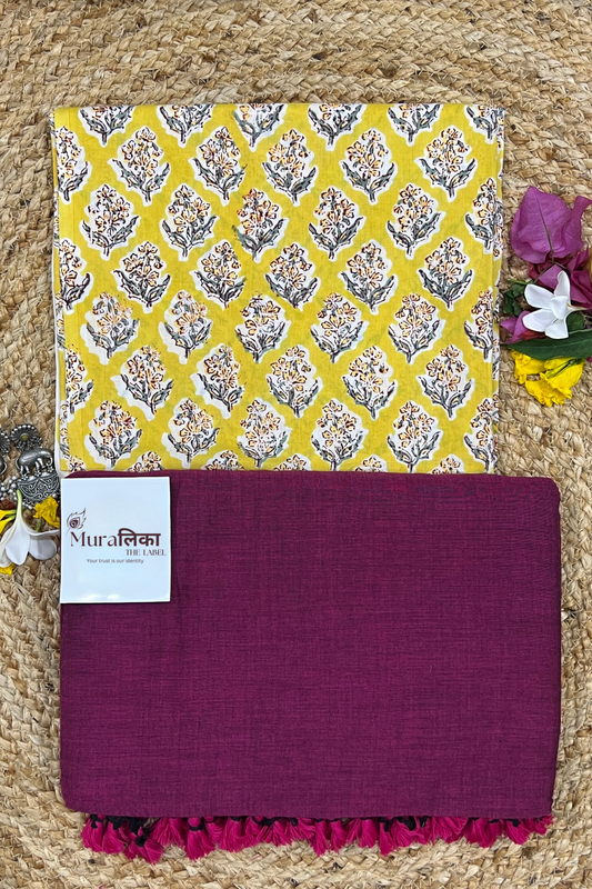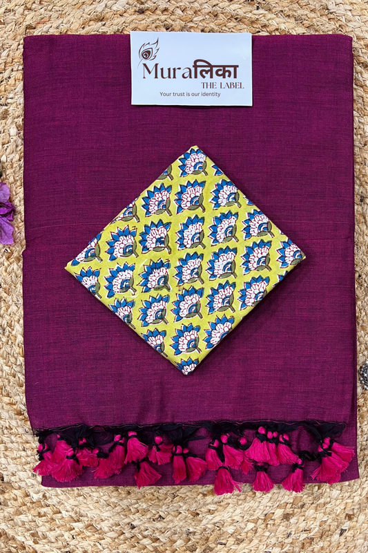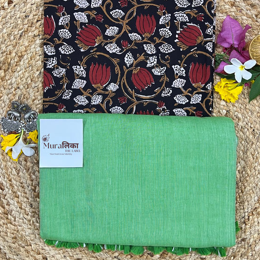 Muralika Maroon & Mehendi Handloom Cotton Saree