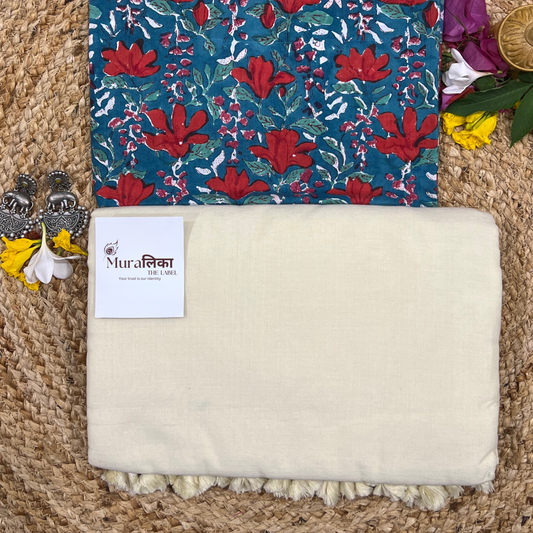 Phoolwari Off white Embroireded Mulmul Cotton Saree