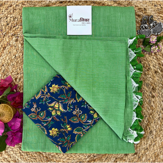 Parijaat Green Embroireded Mulmul Cotton Saree