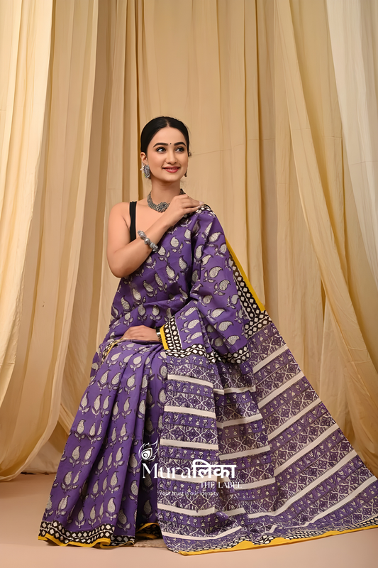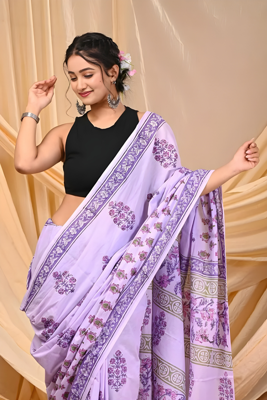 Jhilmil Sequin Purple Mulmul Cotton Saree