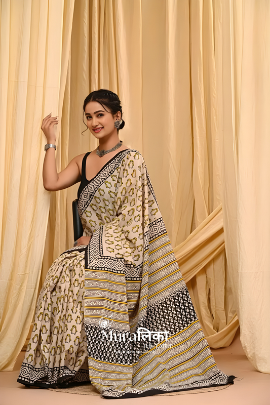 Gulmohar Yellow Handpainted Mulmul cotton Saree