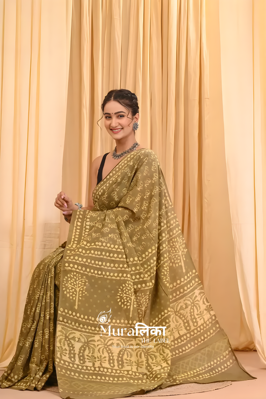 Muralika Maroon & Mehendi Handloom Cotton Saree
