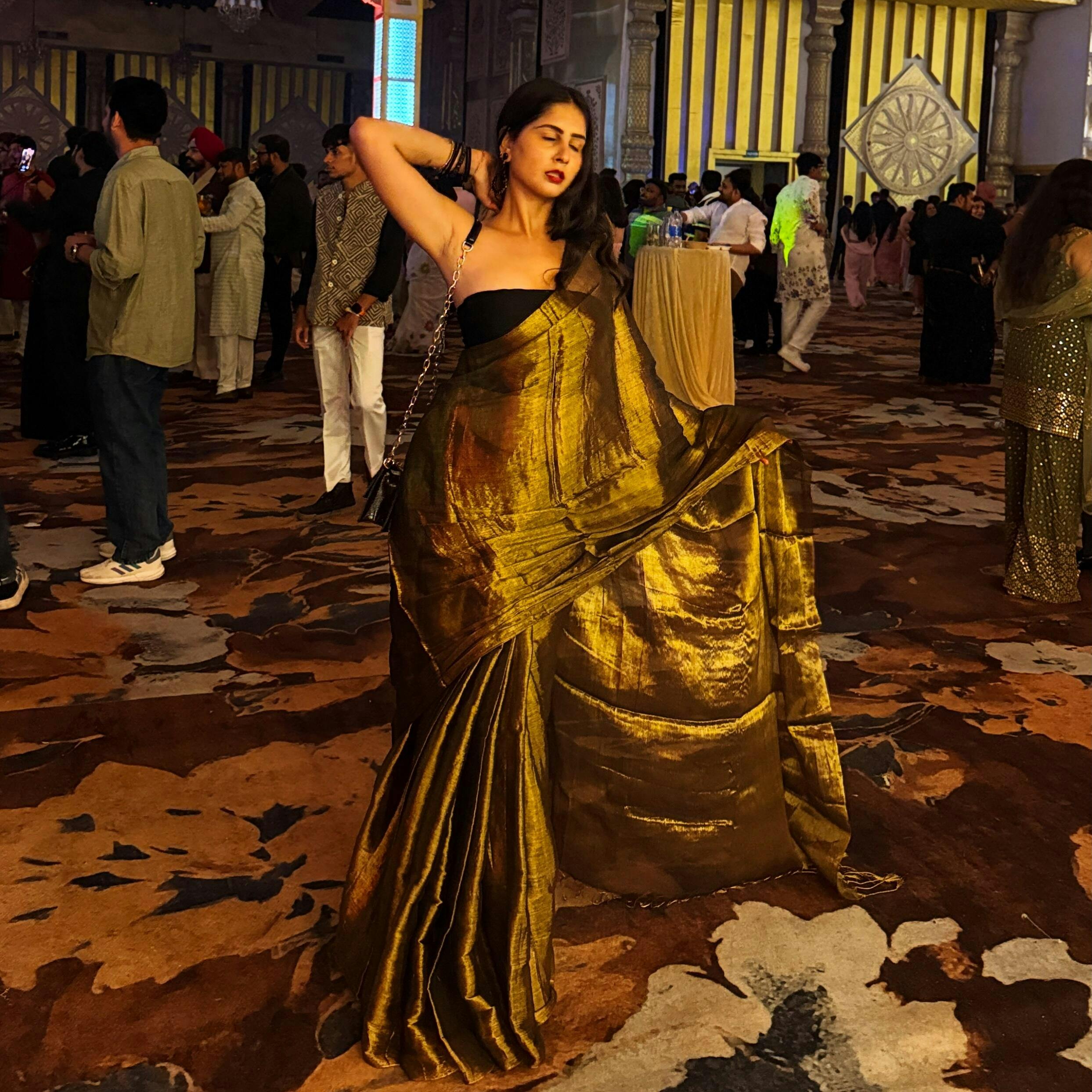 The Tissue Cotton Saree: A timeless blend of tradition and craftsmanship, this saree embodies grace and sophistication. Woven with precision, its delicate threads narrate stories of heritage, artistry, and cultural pride. Designed for the modern woman who values elegance with a touch of tradition, this masterpiece is a symbol of India’s rich textile legacy.