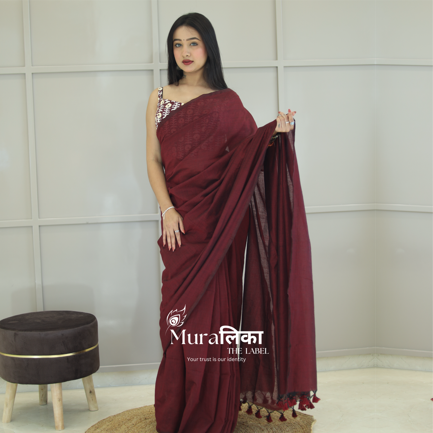 Muralika Maroon & Mehendi Handloom Cotton Saree