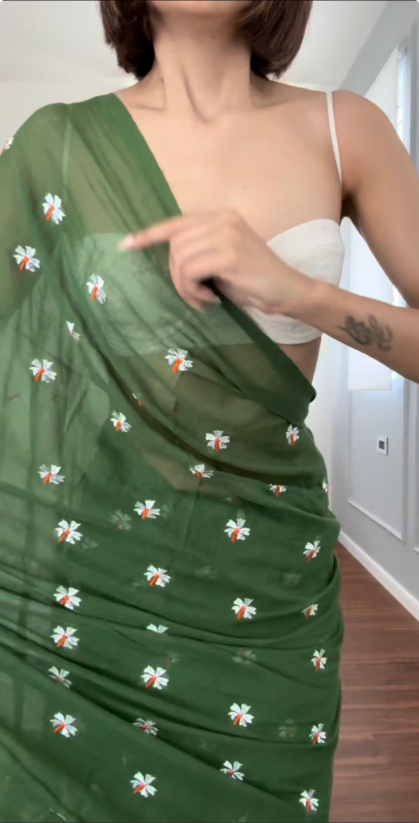 Parijaat Green Embroireded Mulmul Cotton Saree