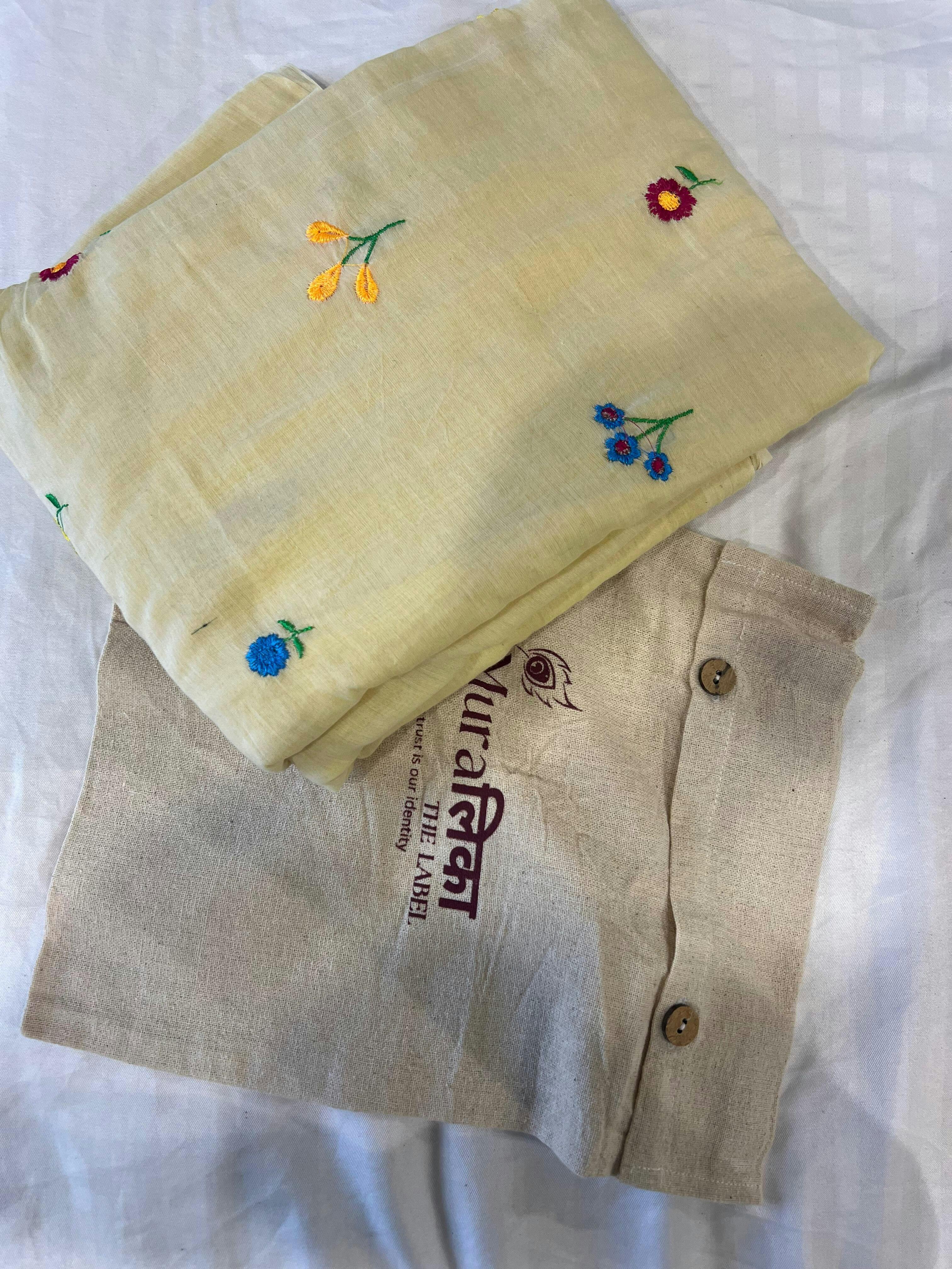 Phoolwari Baby Doll Embroireded Mulmul Cotton Saree
